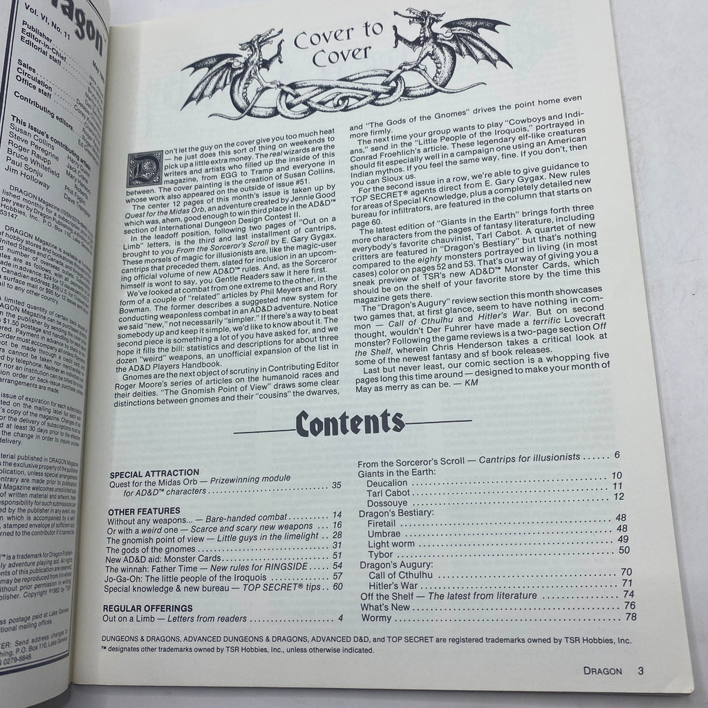 VTG Dragon Magazine June 1982 #61 Gnomes and Their Gods No Label