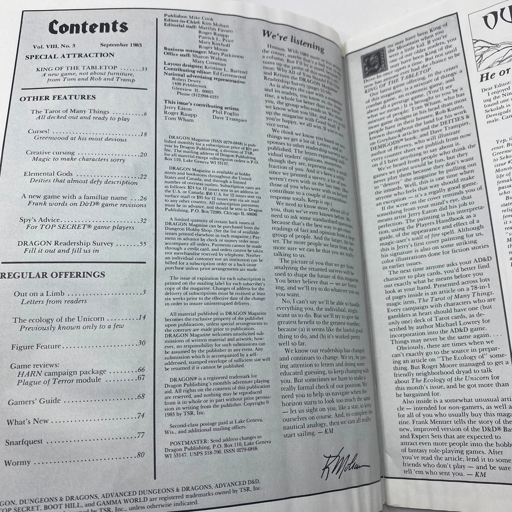 Discover a fascinating piece of gaming history with the vintage issue of Dragon Magazine from September 1983, Volume 77, titled "King of the Tabletop." This magazine is a treasure trove for tabletop gaming enthusiasts and collectors alike, celebrating the rich culture of role-playing games from an era when they began soaring in popularity.