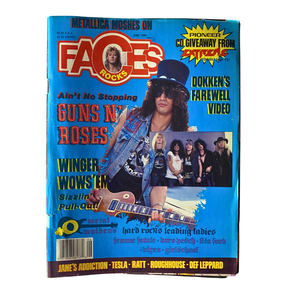 Discover a treasure from the past with this vintage edition of Faces Rocks Magazine from June 1989. Featuring exclusive coverage of iconic rock bands such as Guns N' Roses and Winger, this collectible magazine is a must-have for music enthusiasts and vintage magazine collectors alike.