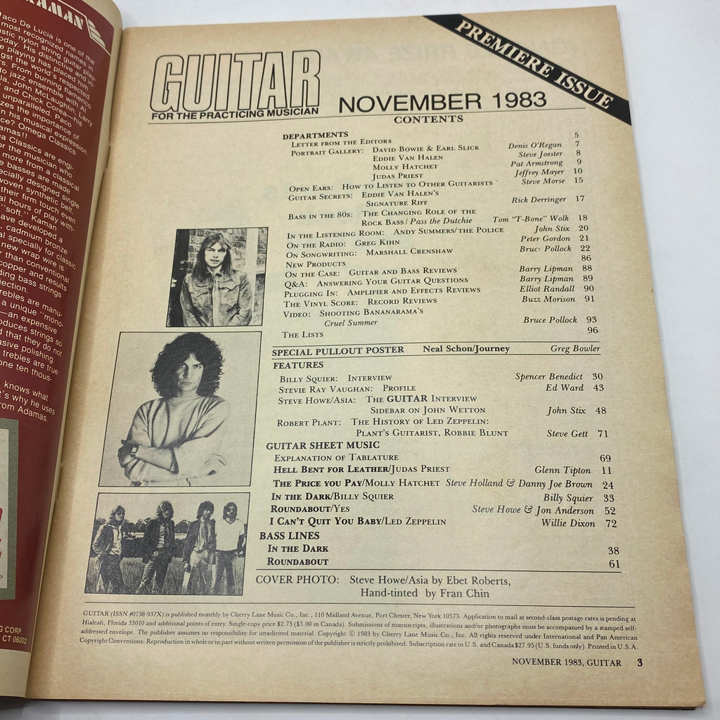 Explore the intriguing world of music with the Guitar Magazine November 1983 Premiere Issue, featuring the legendary Steve Howe. This collectible vintage magazine is a must-have for any music enthusiast or collector of vintage magazines.