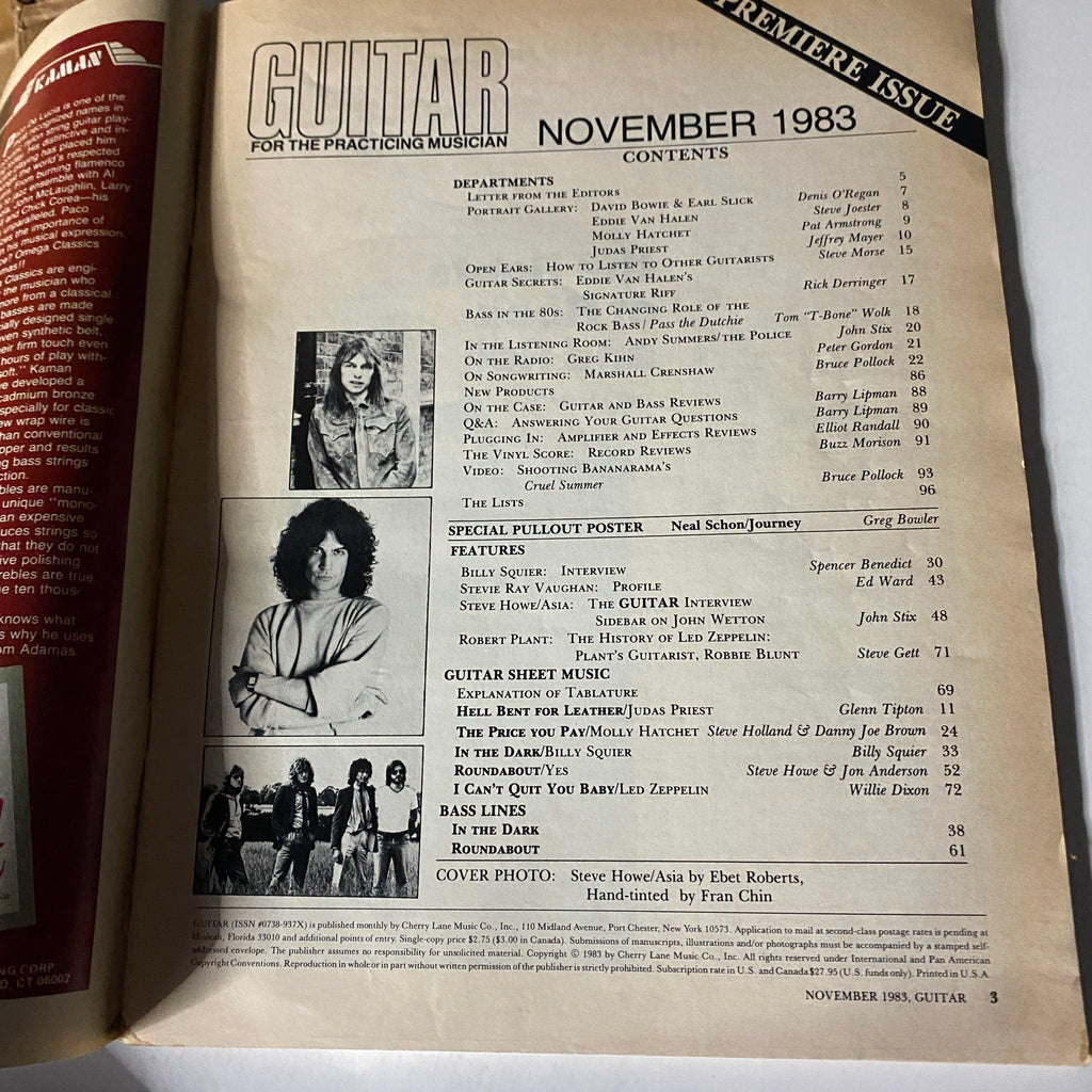 This beautifully preserved vintage magazine, the November 1983 issue of Guitar Magazine, features a captivating cover story on the legendary guitarist Steve Howe of the band Asia, showcasing his remarkable talents and contributions to the world of music.