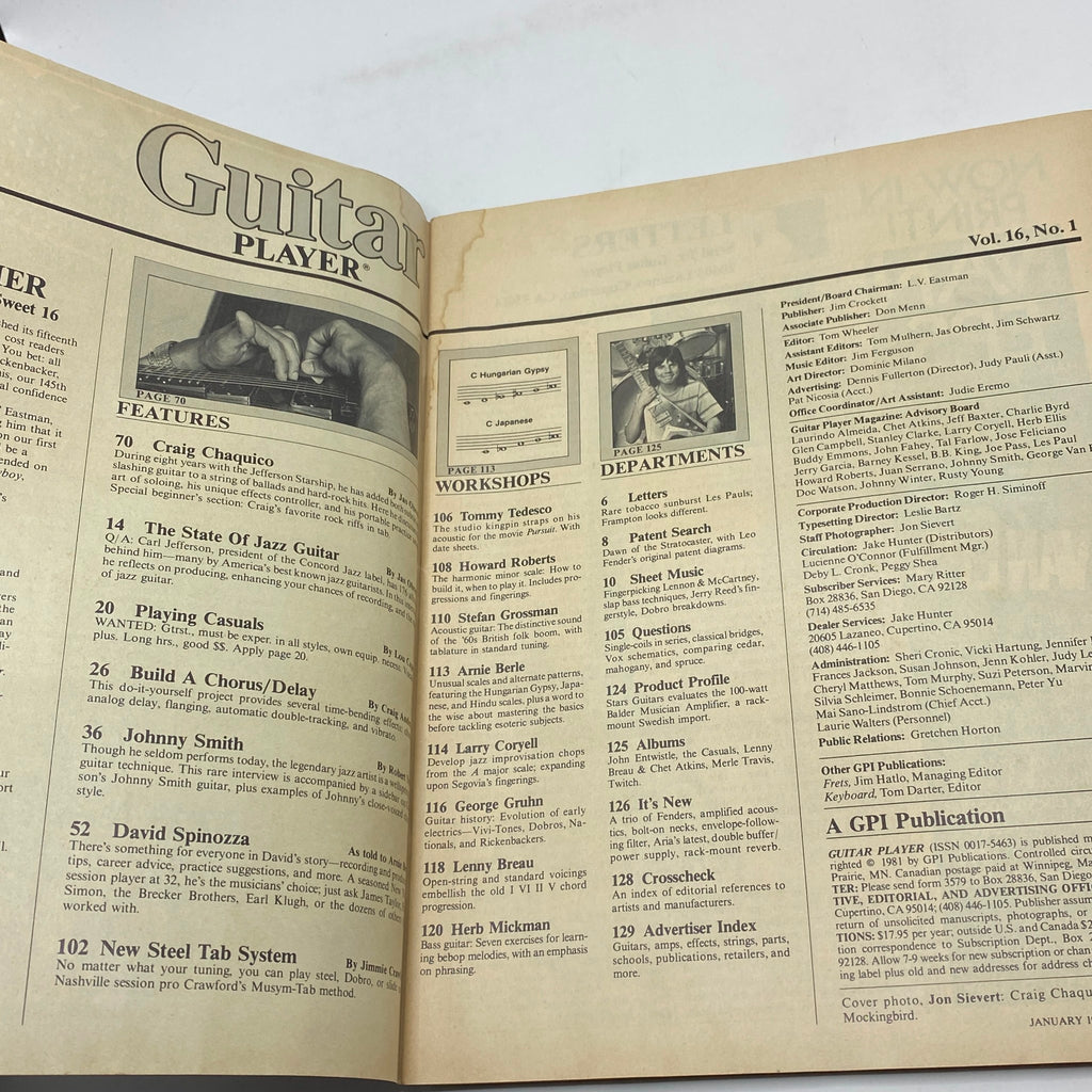 Discover the Guitar Player Magazine January 1982, featuring iconic musicians Craig Chaquico and Johnny Smith. This vintage issue is a must-have for any collector or music enthusiast.