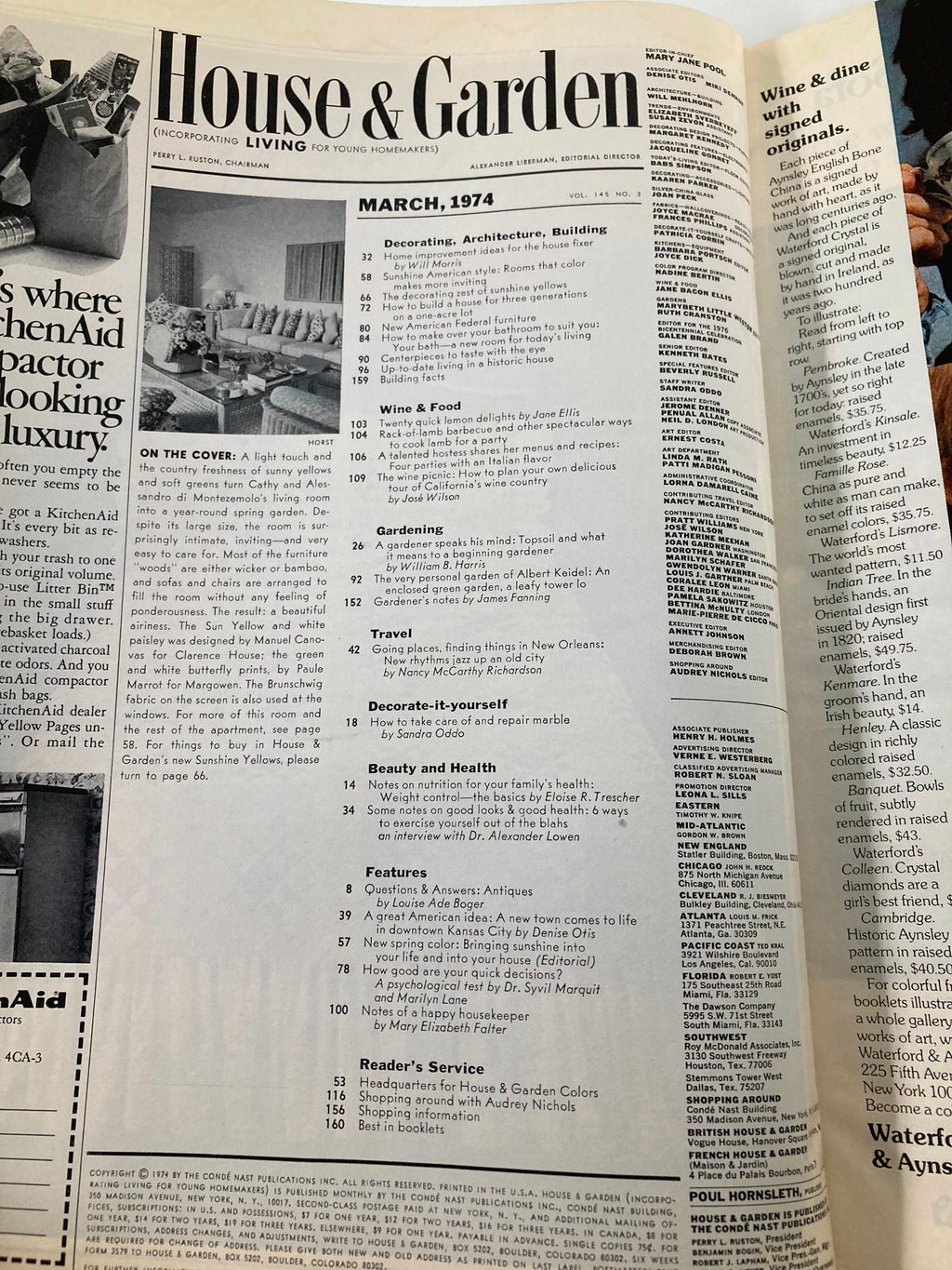 Step back in time with the vintage House & Garden Magazine from March 1974. This issue takes you on a picturesque Tour of California's Wine Country, showcasing stunning landscapes and rich cultural experiences that have made this region a favorite among wine enthusiasts and travelers alike.