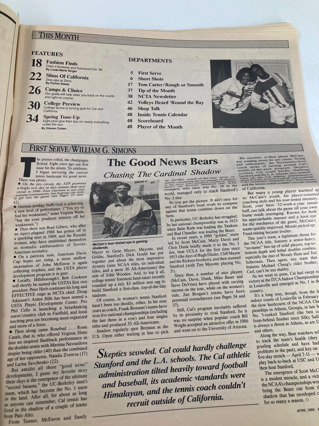 Discover the charm of vintage publications with the Inside Tennis Magazine, April 1989. This collectible issue features the intriguing cover story 'Slims Champs: Z Came To Play,' making it a must-have for tennis enthusiasts and vintage magazine collectors alike.