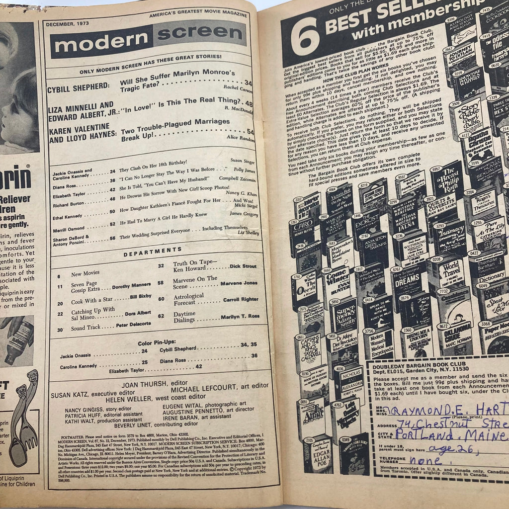 Discover a true collector's gem with this Modern Screen magazine from December 1973, featuring the iconic pairing of Liz Taylor and Richard Burton on the cover. This vintage magazine provides a nostalgic glimpse into the glittering world of Hollywood during the early 70s, showcasing the personal and professional lives of its most celebrated stars.