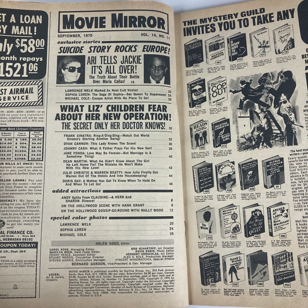 VTG Movie Mirror Magazine September 1970 Jackie & Aristotle Onassis No Label