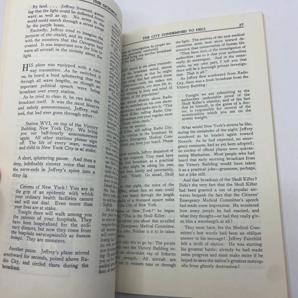 This extraordinary item is a rare collectible from the world of vintage magazines, showcasing the February 1939 edition of the Octopus Magazine. With the captivating title, "The City Condemned to Hell," this issue expertly illustrates the tumultuous spirit of its time.
