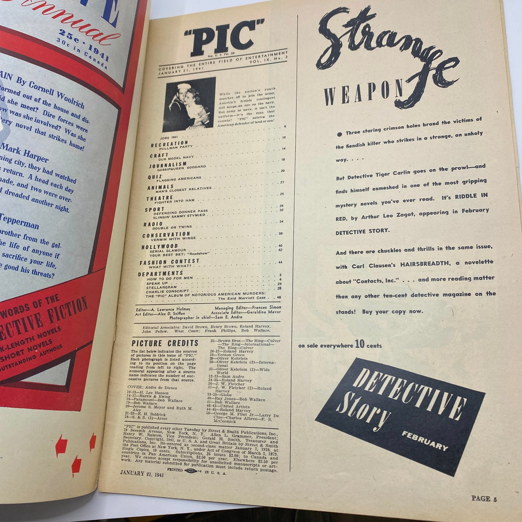 Step back in time with the Vintage Pic Magazine from January 21, 1941, Volume 9, Number 2. This collectible magazine features a captivating cover story centered around Max Baer, a prominent figure in boxing history, recognized for his charm and talent in the ring. This issue offers a glimpse into the entertainment and sports culture of this fascinating era.
