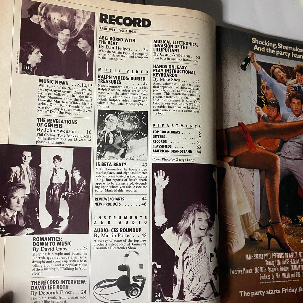 Discover a piece of rock history with the vintage magazine featuring the charismatic frontman David Lee Roth on the cover. This April 1984 issue of Record Magazine, Vol 3 No. 6, captures the essence of the 1980s music scene and is a must-have for collectors of vintage magazines.
