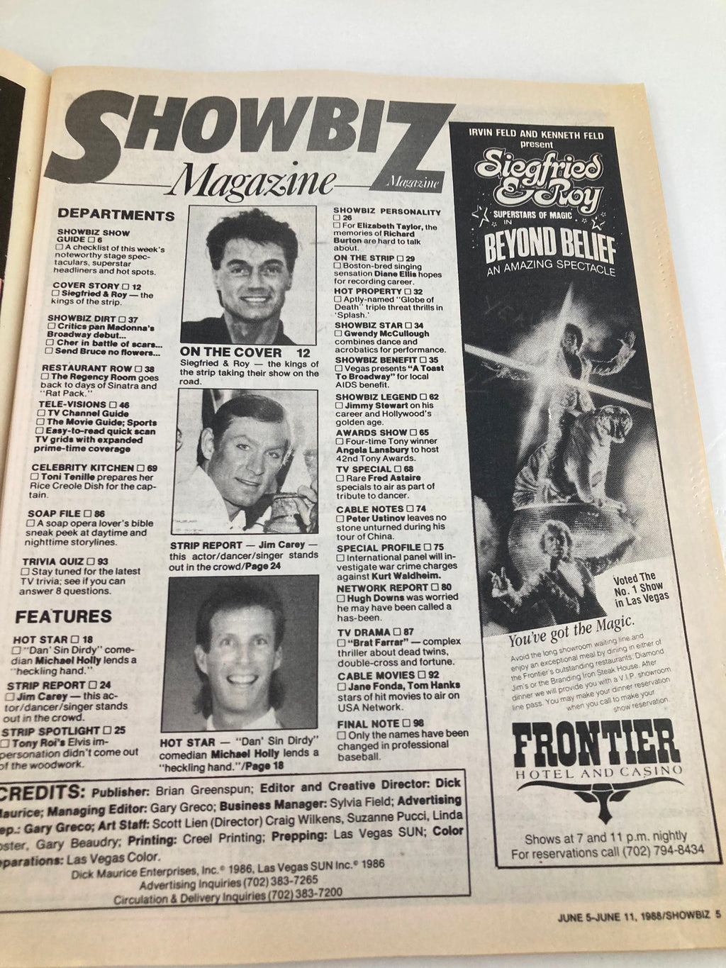 Step back in time with the captivating Showbiz Magazine from June 5, 1988, featuring the enchanting Siegfried & Roy, the Kings of The Strip. This remarkable issue not only highlights the legendary duo who defined Las Vegas entertainment but also serves as a timeless piece of pop culture history.