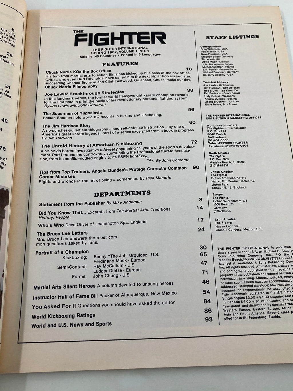 Discover a piece of martial arts history with the The Fighter Magazine from Spring 1987. This premier issue features the talented Ernie Reyes, Jr., spotlighting his contributions to the martial arts community and the pop culture of the time.