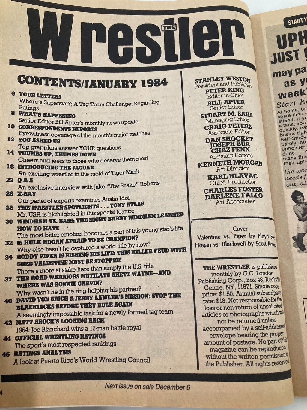 Discover the iconic January 1984 issue of The Wrestler magazine, a must-have for fans of vintage wrestling and classic sports publications. This collectible magazine features legendary wrestling superstars Hulk Hogan, Roddy Piper, and Greg Valentine on its vibrant cover, taking you back to a pivotal moment in wrestling history.