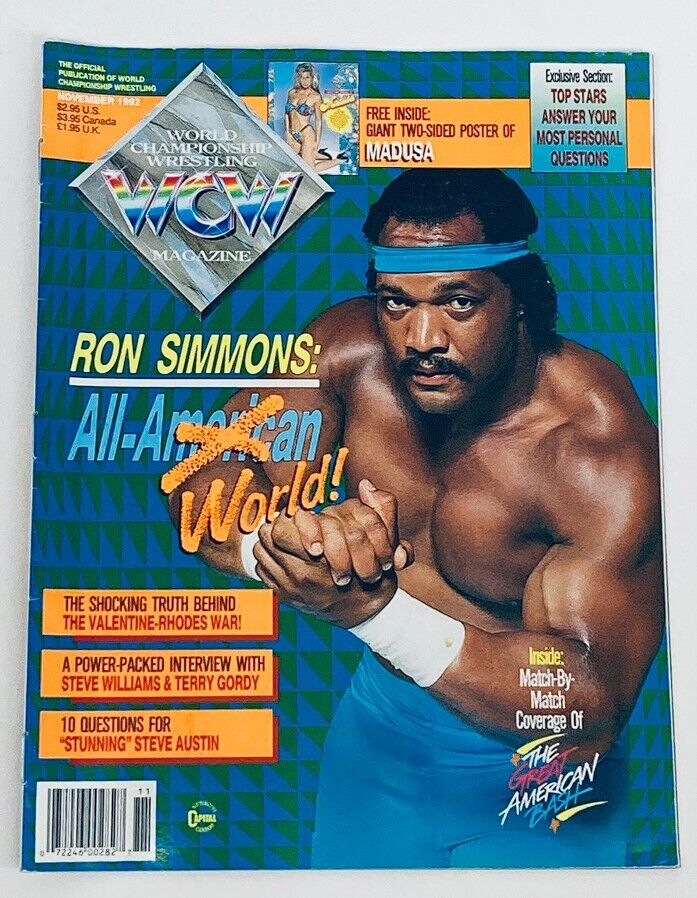 Discover a piece of wrestling history with the WCW Wrestling Magazine, November 1992 edition. This collectible vintage magazine features iconic wrestlers, including Ron Simmons, Steve Williams, and Terry Gordy, making it a must-have for any wrestling enthusiast or collector of vintage magazines.