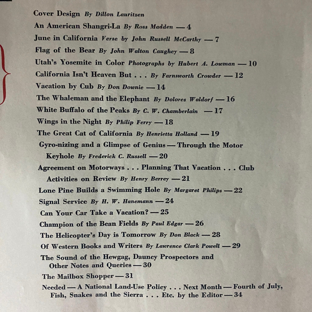 This June 1946 issue of Westways Magazine delivers timeless insights into California's culture and nature, serving as a document of the landscape and transportation development of its time. It's a must-have for collectors, historians, and anyone fascinated by vintage magazines. Don't miss this opportunity to own a piece of history!