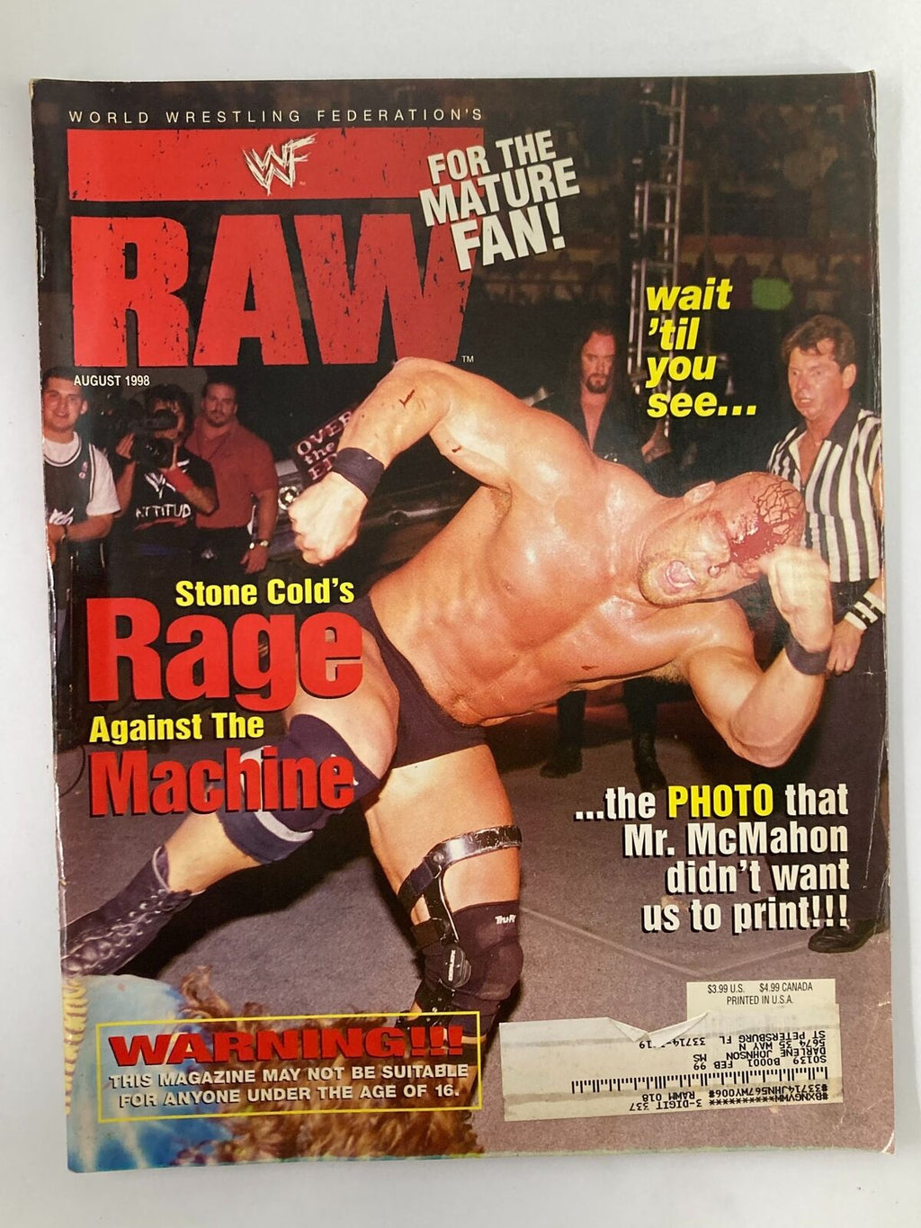 Explore the exciting world of professional wrestling with the WWF Raw Magazine from August 1998. This collectible vintage magazine features iconic superstars, including the rebellious Stone Cold Steve Austin and the cunning Vince McMahon on the cover, offering a captivating look into the era of Monday Night Wrestling Wars.